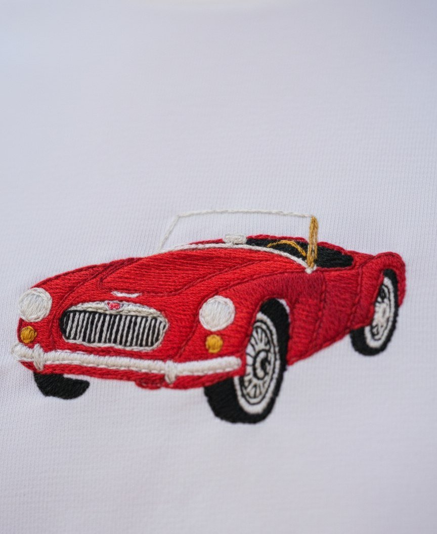 Rev up your style with our Classic Red Vintage Car Embroidered T-Shirt, crafted for men who love timeless automobiles and standout minimal fashion. This premium white tee features a beautifully detailed embroidery of a retro red convertible car — capturing both nostalgia and class in one design.